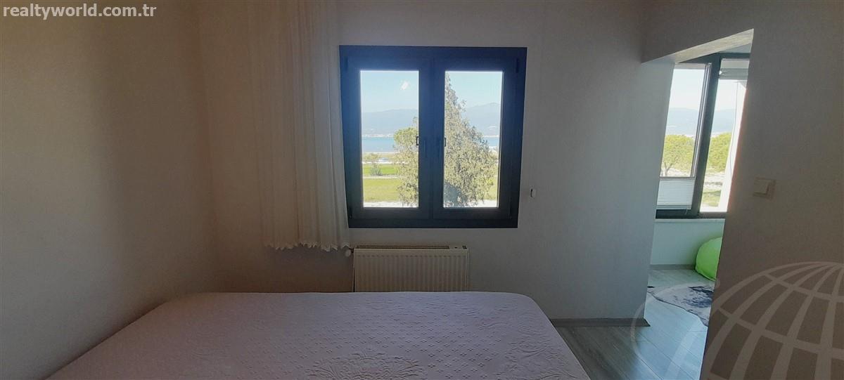 * Salondan, 1 odadan, balkondan ve verandadan; asla kapanmaz; plaj, Kaz Dağları ve Edremit Körfezi manzaralıdır.